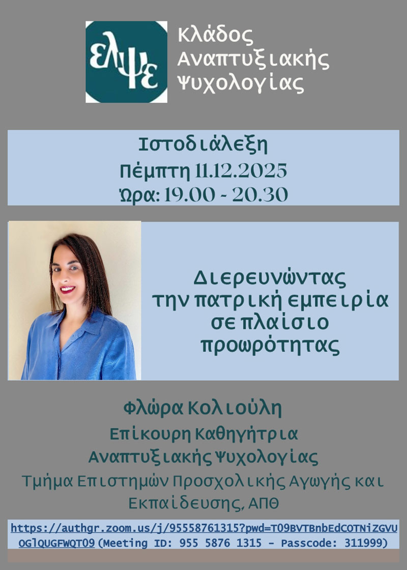 Τετάρτη 6 Μαρτίου 2024 στις 18:00, online μέσω zoom